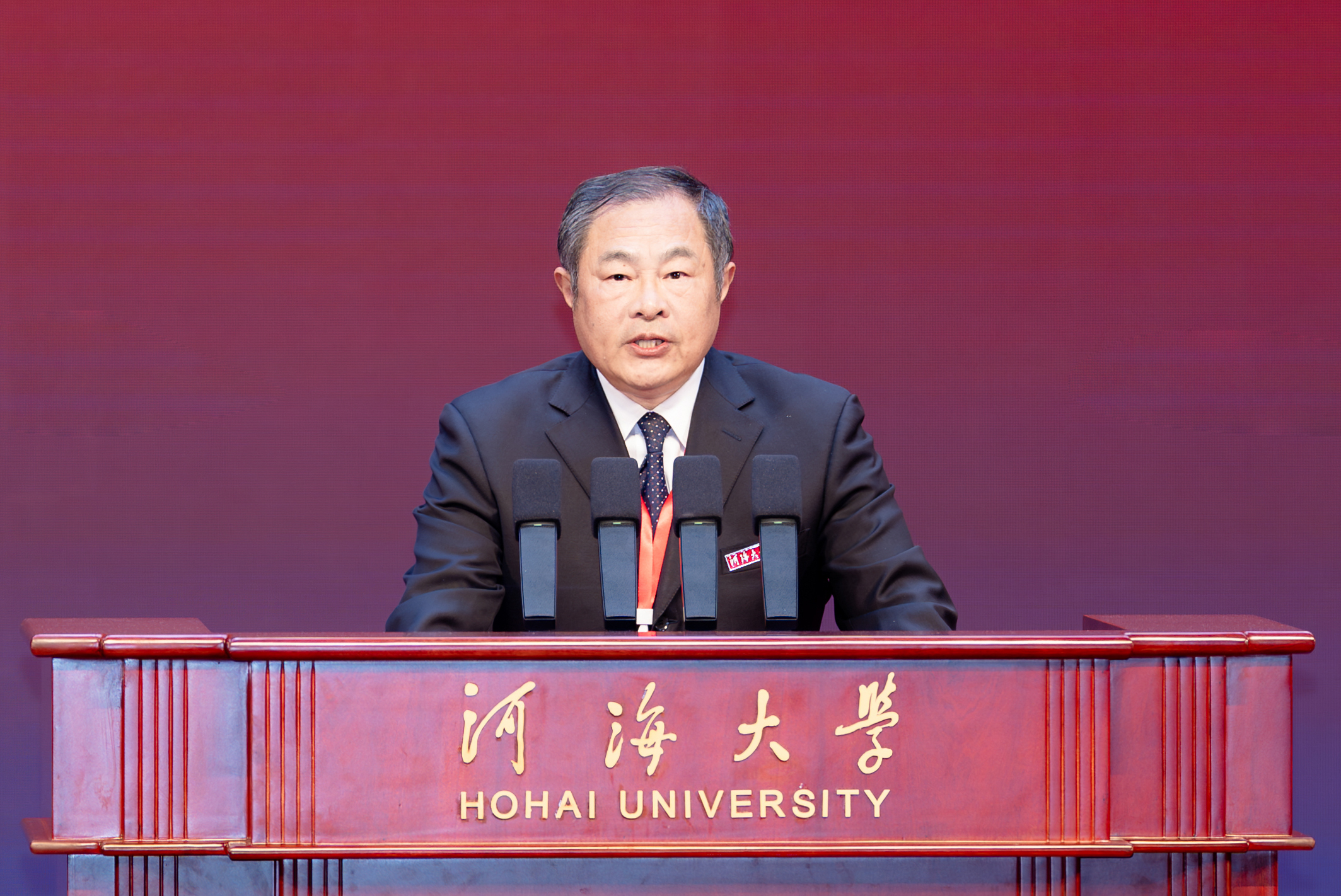 On behalf of the Ministry of Education, Xiong Sihao extended warm congratulations and sincere greetings to all faculty, staff, students, and alumni of Hohai University. He pointed out that Hohai University is the first institution of higher learning in China to cultivate water conservancy talent and has cultivated more than 300,000 outstanding individuals for the country. In addition, he acknowledged the positive results achieved by the university in developing first-class disciplines centered on water to actively serve China's national river strategies and dual carbon goals, highlighting a series of landmark achievements. Moreover, he expressed several expectations of Hohai University's new journey ahead, hoping that Hohai University would: adhere to the socialist direction of education, resolutely implement the fundamental task of fostering virtue through education, and strive to cultivate a new generation for the great cause of national rejuvenation; adhere to reform and innovation, comprehensively improve the quality of independent talent cultivation, and cultivate more top innovative talent and talent urgently needed for national strategies; strengthen organized scientific research, better serve national strategies and regional economic and social development, and contribute more Hohai solutions to ensuring national water security and participating in global water governance.